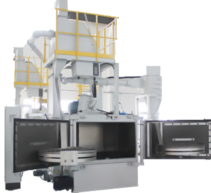双吊钩式抛丸机由两个吊钩装载工件交替进入抛丸清理室内。利用抛丸器将0.2~0.8的弹丸抛向工件的表面,使得工件的表面达到相对的粗糙度,让工件变得美观,或者改变工件的压应力提高寿命。本机型广泛应用于铸造、建筑、化工、电机、机床等行业的中、小型铸、锻件的表面清理或强化处理。